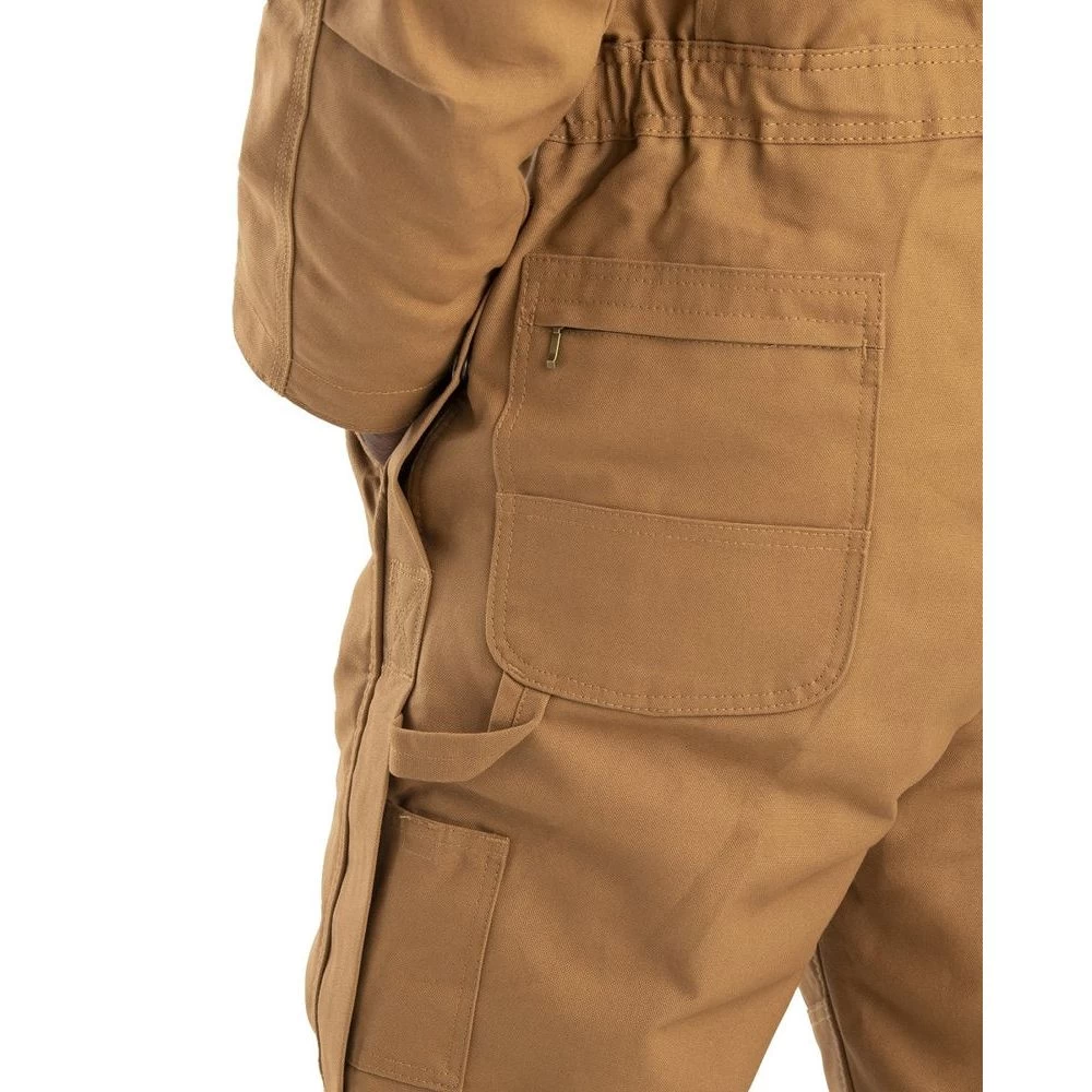 These ever-popular Deluxe Insulated Coveralls are engineered for maximum durability and work readiness. When we say tough we mean T-U-F-F tough. Triple-needle stitched seams, reinforced bartacks at all stress points, two reinforced hip pockets (the left with a brass zipper), four-needle stitched waistband with elastic inserts, and reinforced knees.